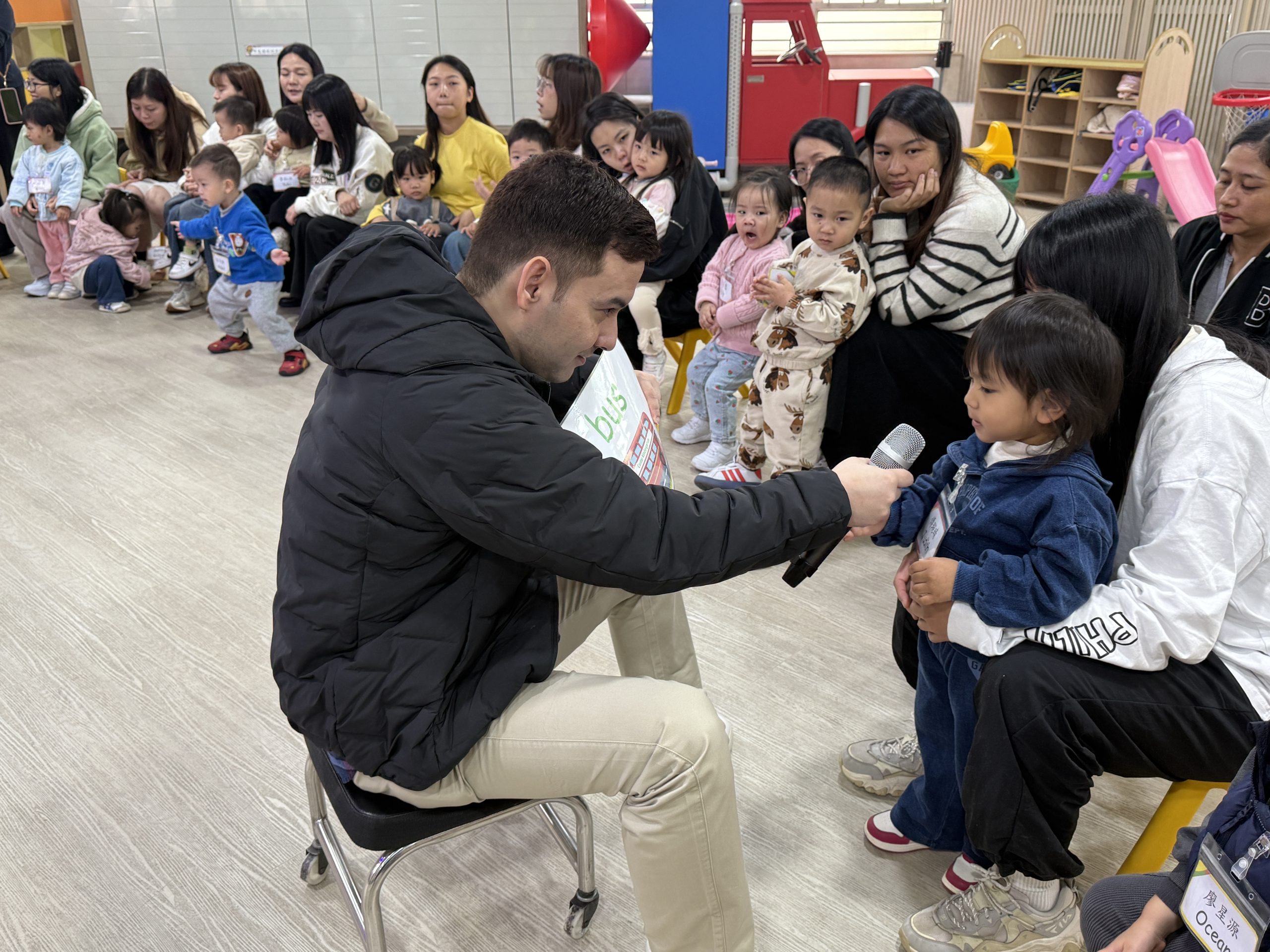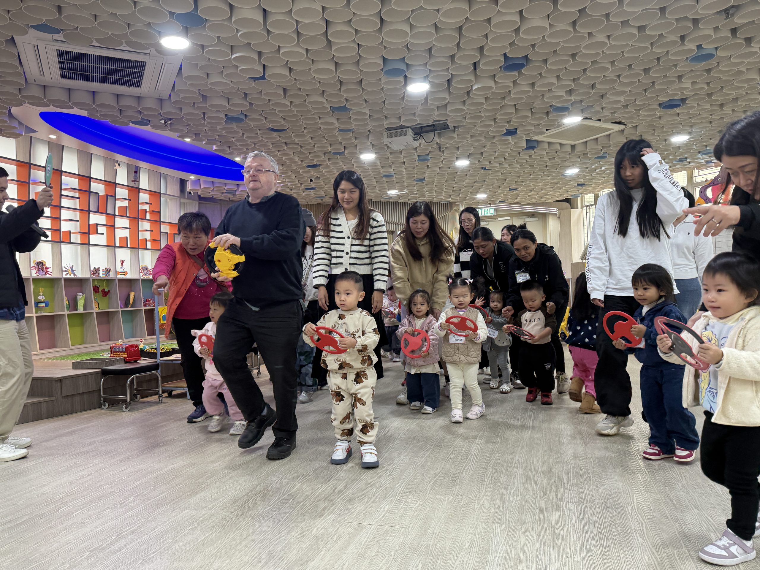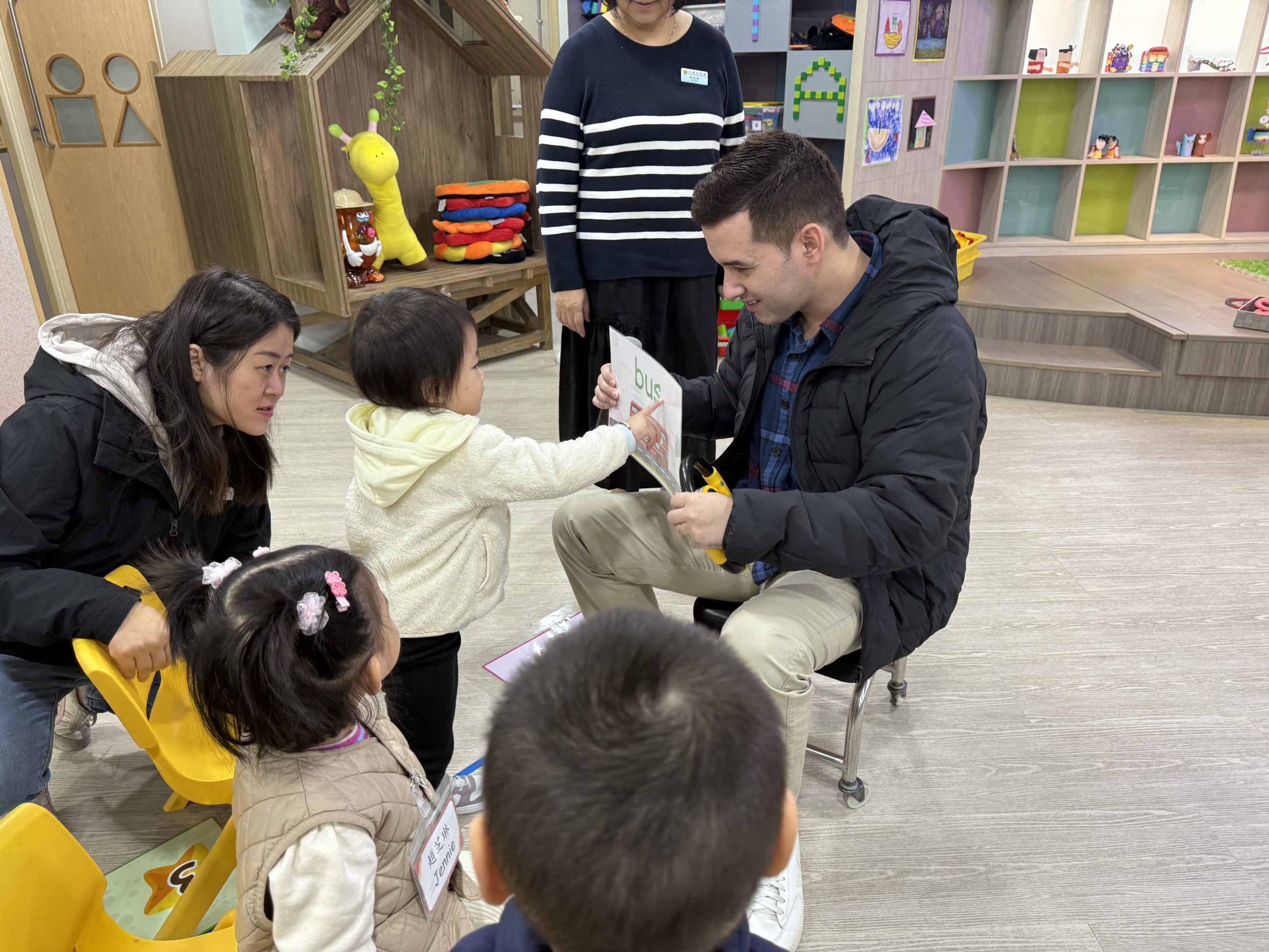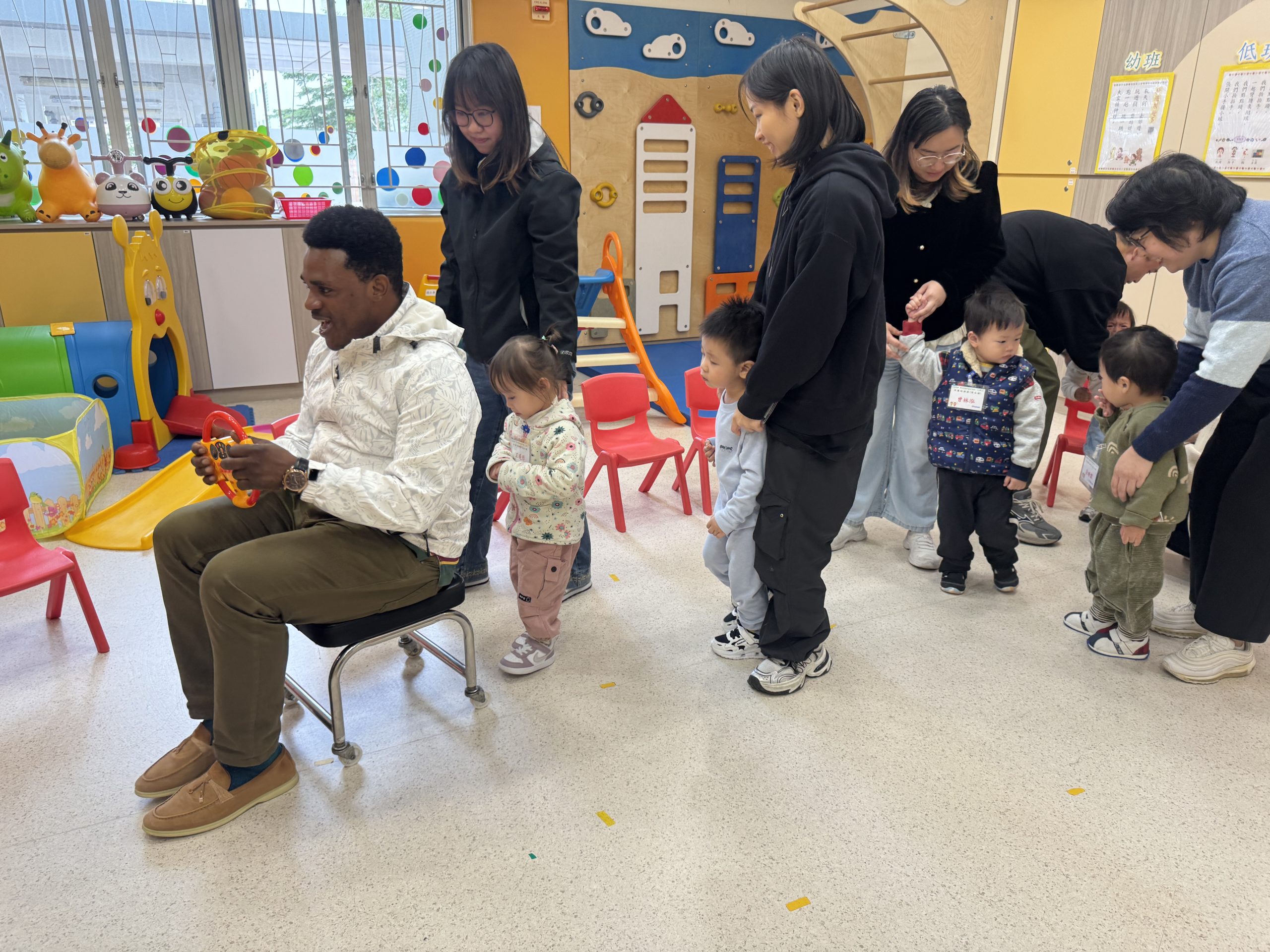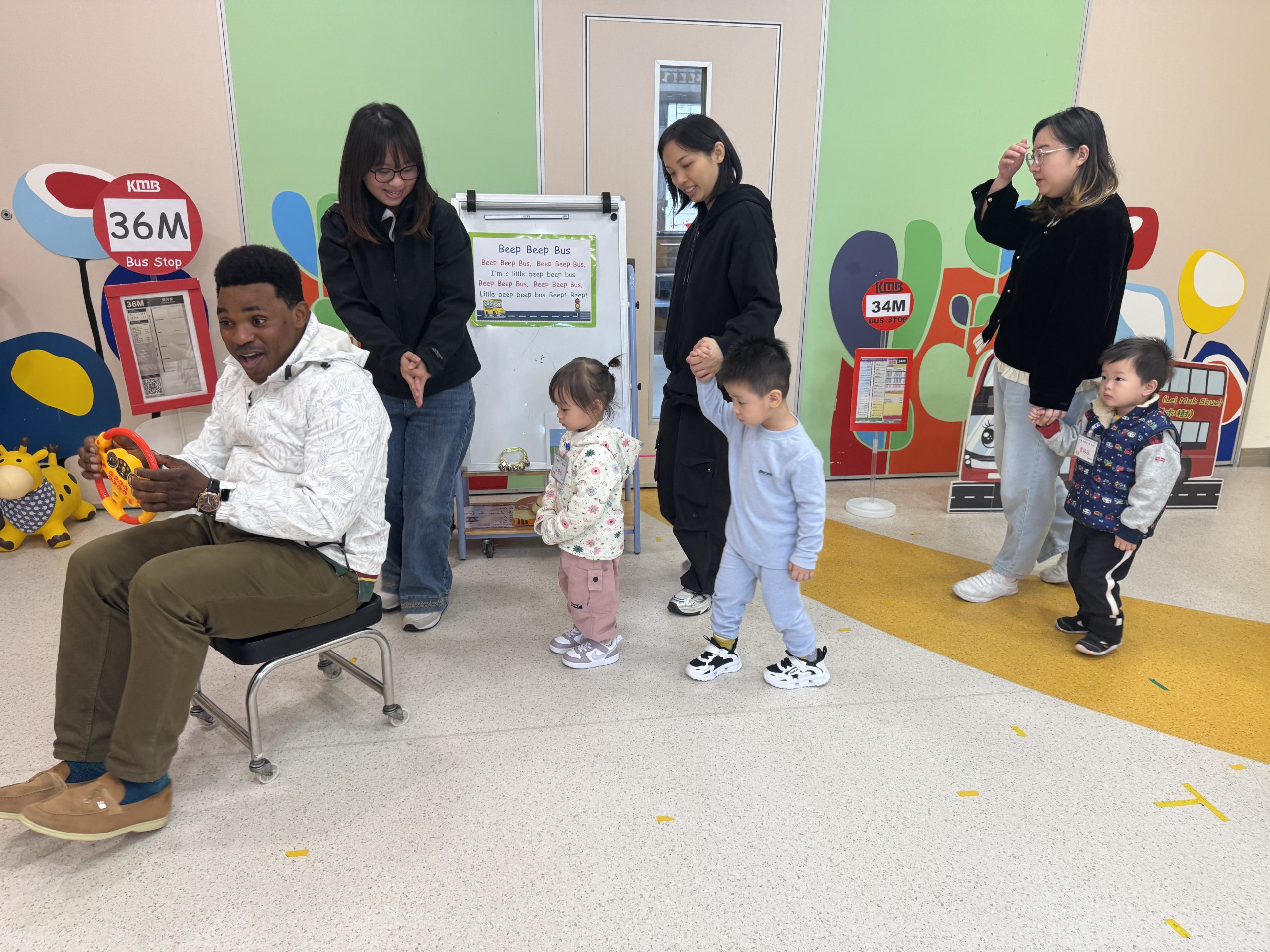 12 12 月, 2025 新生英文遊戲班(1) (new) 我們為新生家長及小朋友舉行了「新生英文遊戲班」!小朋友進入活動區就已被色彩繽紛的「紅色巴士」吸引了眼球!在外籍老師生動活潑的帶領下,大家一起唱著經典童謠《The Wheels on the Bus》,玩轉巴士方向盤、搖搖鈴、按喇叭,又跟老師用全英語互動,邊玩邊說,笑聲滿滿!活動中,小朋友看著可愛的巴士,大聲喊出「Bus!」,可愛極了!第一次來學校的小朋友,初時有些害羞,但不到半小時就跟外籍老師玩得超熟絡,家長們也直說:「原來孩子這麼快就能開口說英語!」