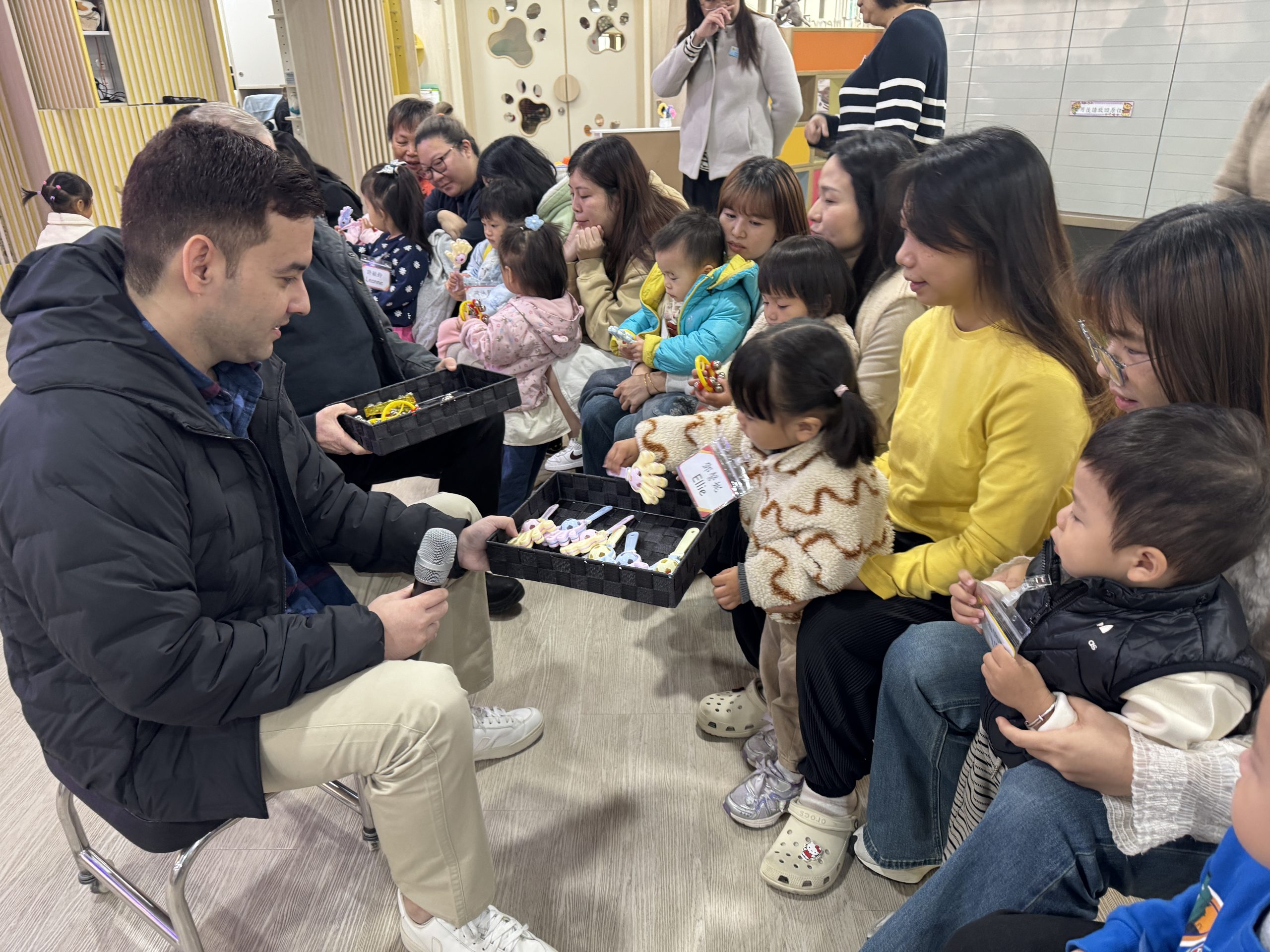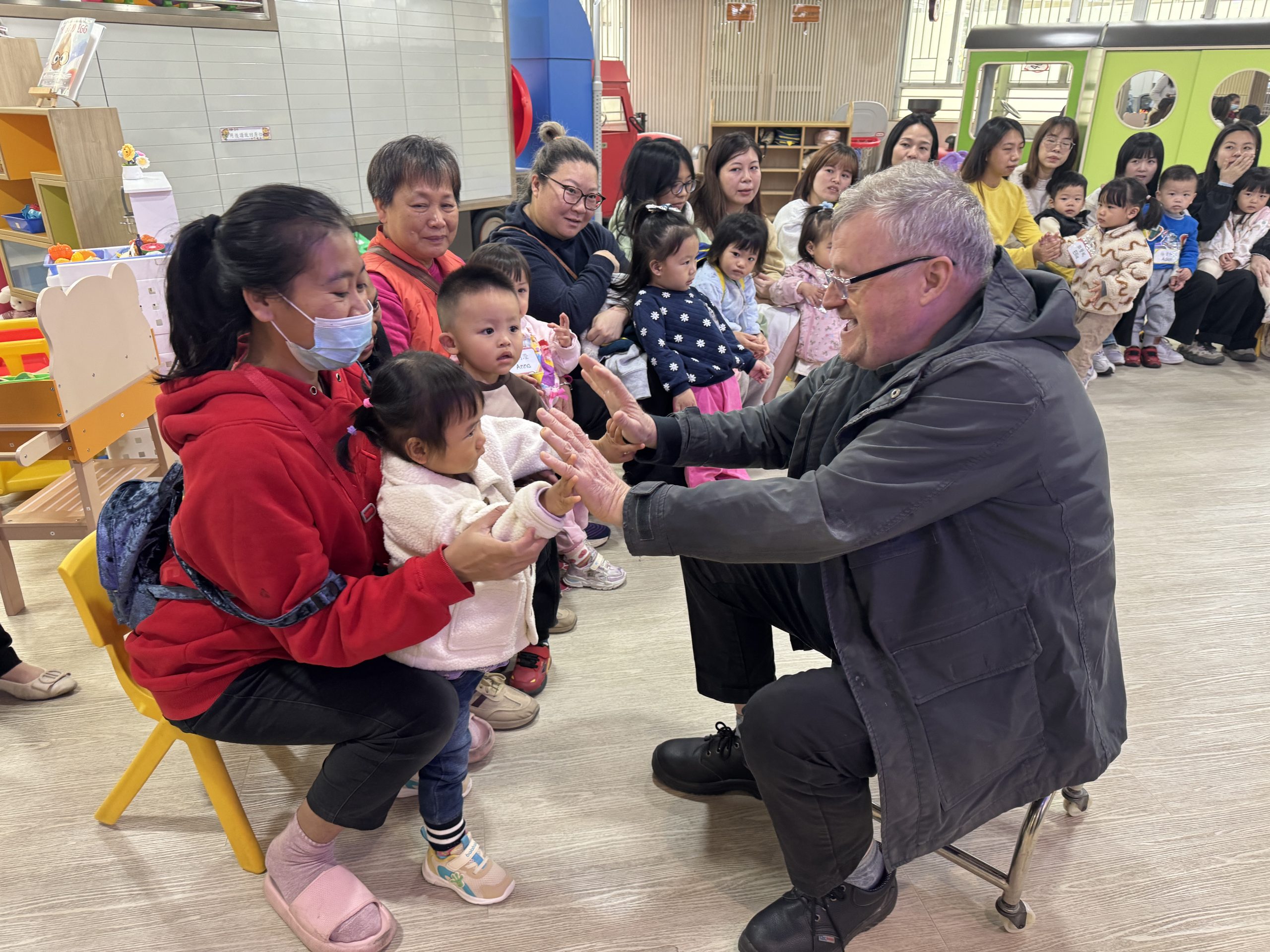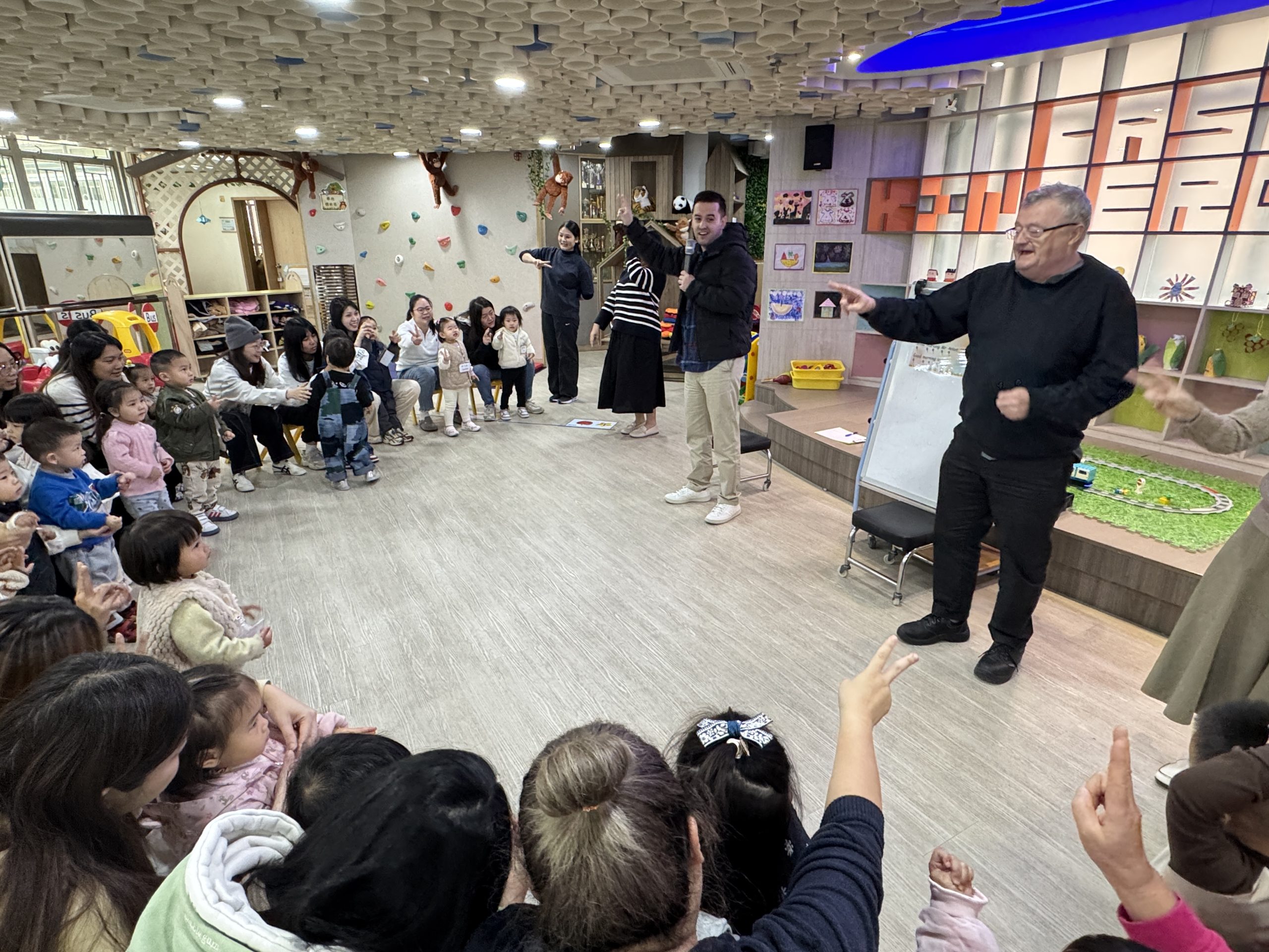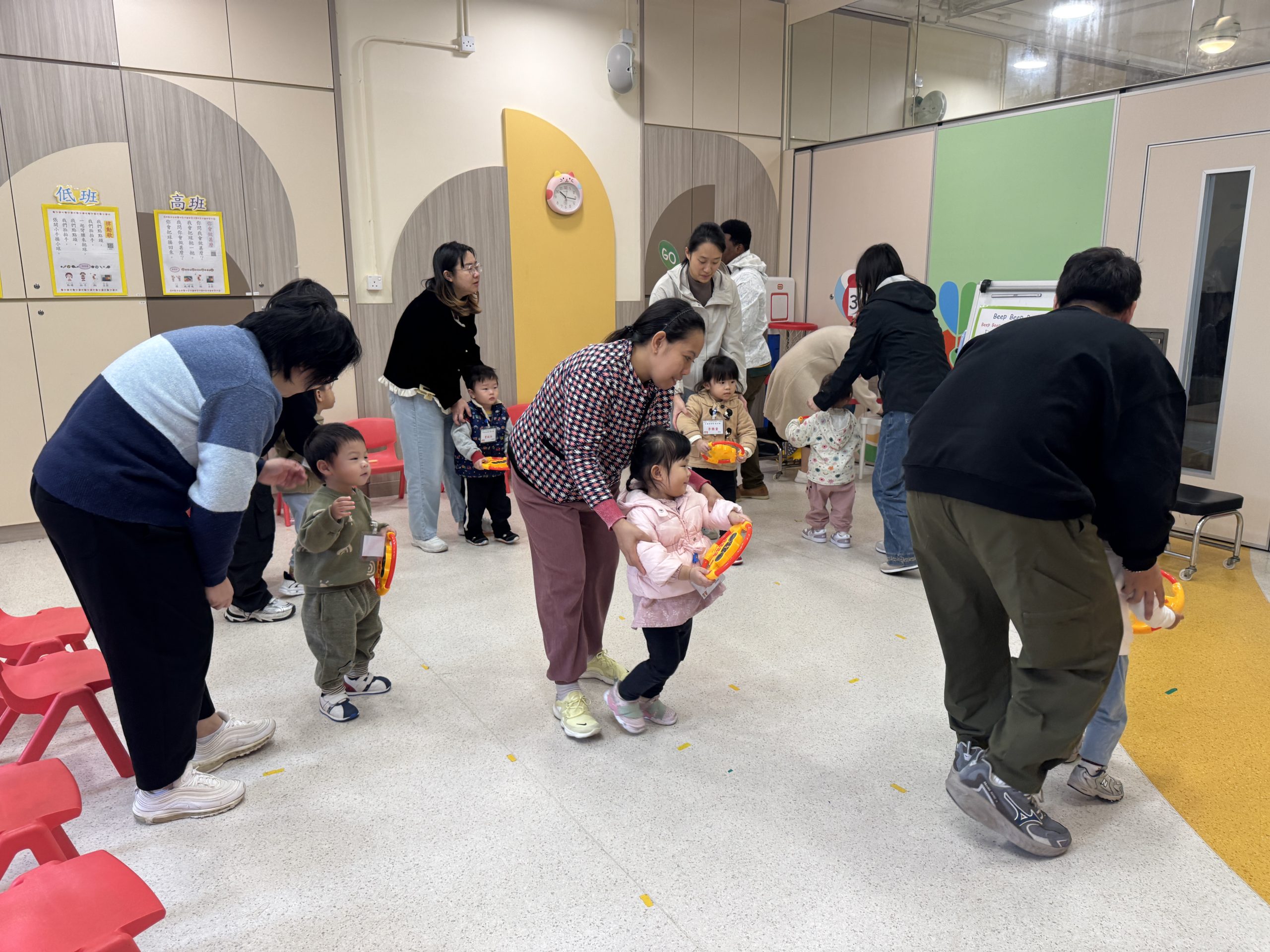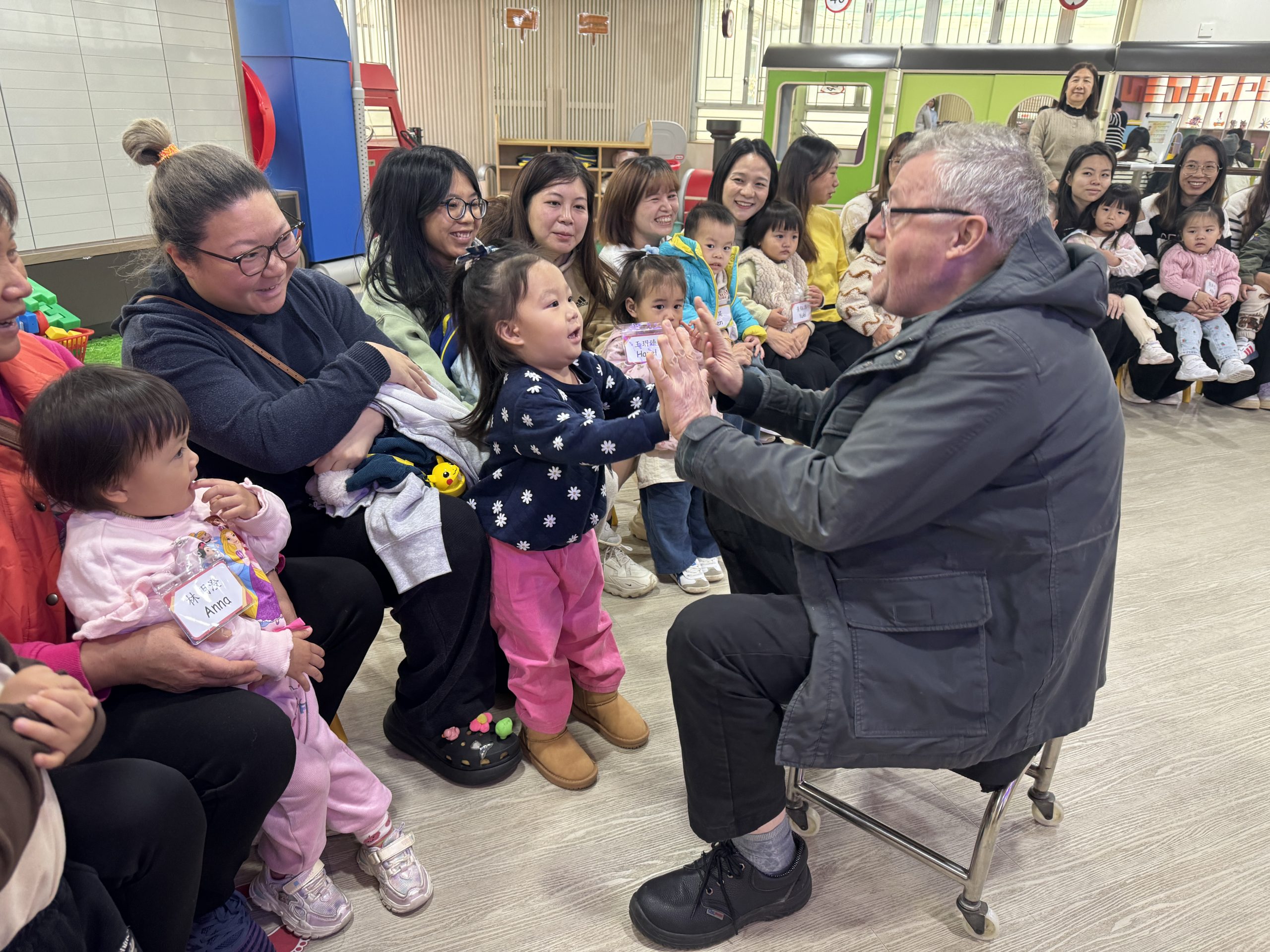 12 12 月, 2025 新生英文遊戲班(1) (new) 我們為新生家長及小朋友舉行了「新生英文遊戲班」!小朋友進入活動區就已被色彩繽紛的「紅色巴士」吸引了眼球!在外籍老師生動活潑的帶領下,大家一起唱著經典童謠《The Wheels on the Bus》,玩轉巴士方向盤、搖搖鈴、按喇叭,又跟老師用全英語互動,邊玩邊說,笑聲滿滿!活動中,小朋友看著可愛的巴士,大聲喊出「Bus!」,可愛極了!第一次來學校的小朋友,初時有些害羞,但不到半小時就跟外籍老師玩得超熟絡,家長們也直說:「原來孩子這麼快就能開口說英語!」