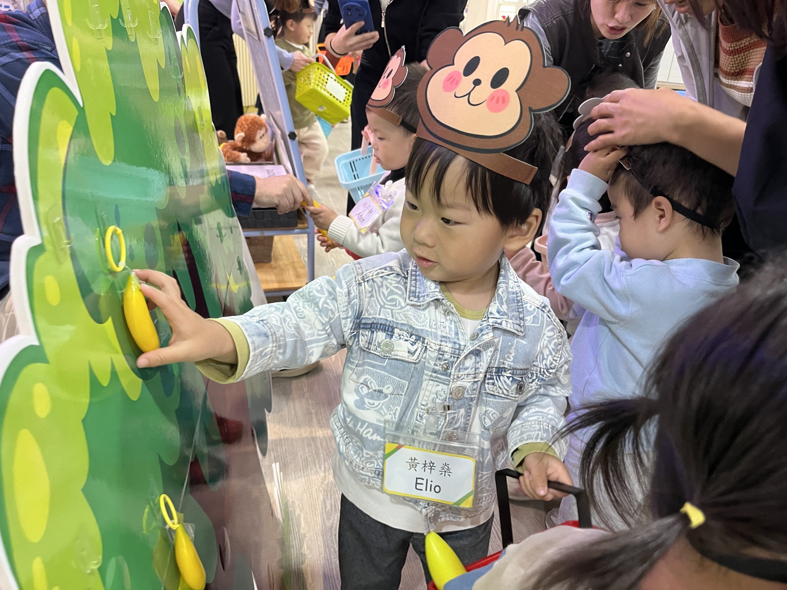 「Little Monkey  , Little Monkey ….」是次「新生英文遊戲班(2)」,一眾小朋友戴上猴子頭飾,變身成為可愛的小猴子,